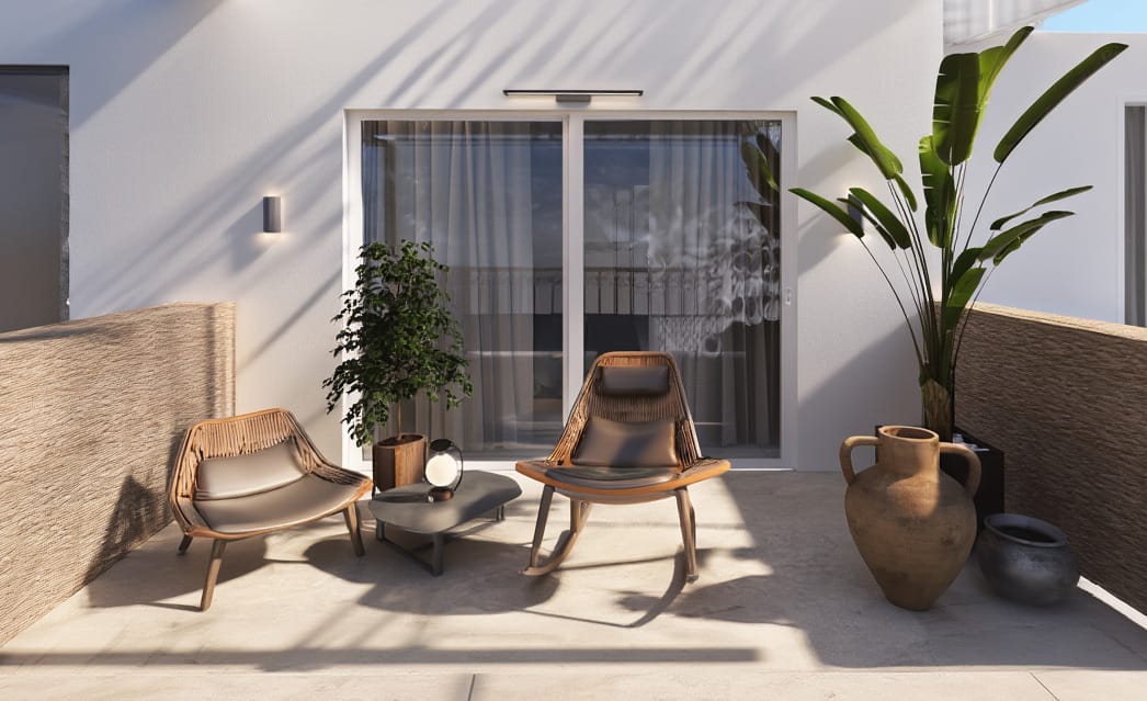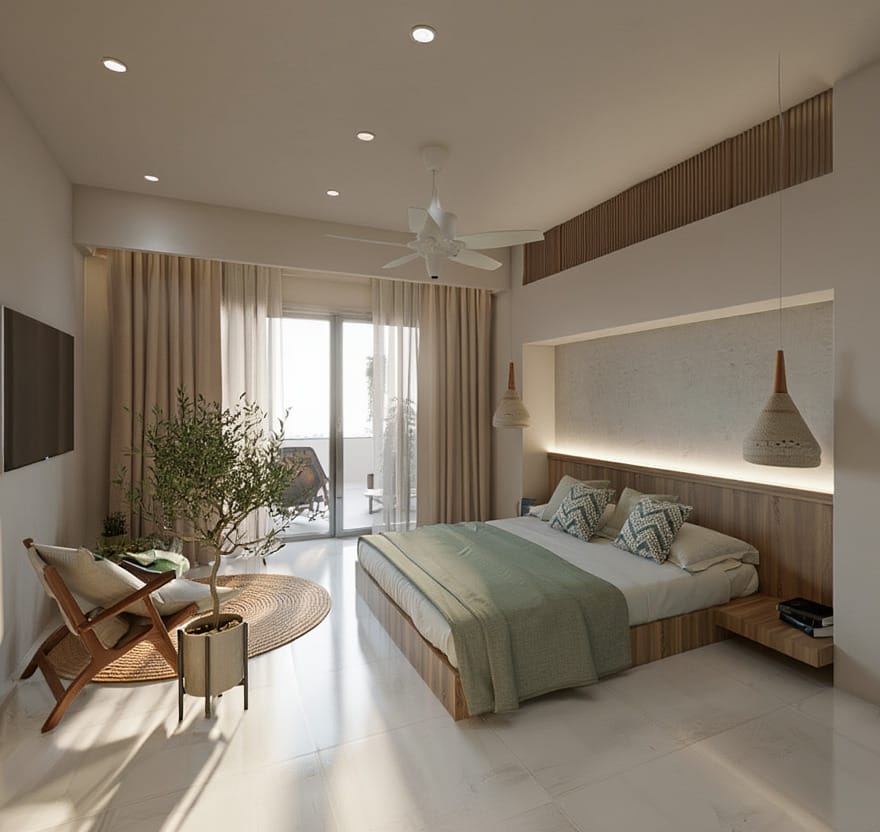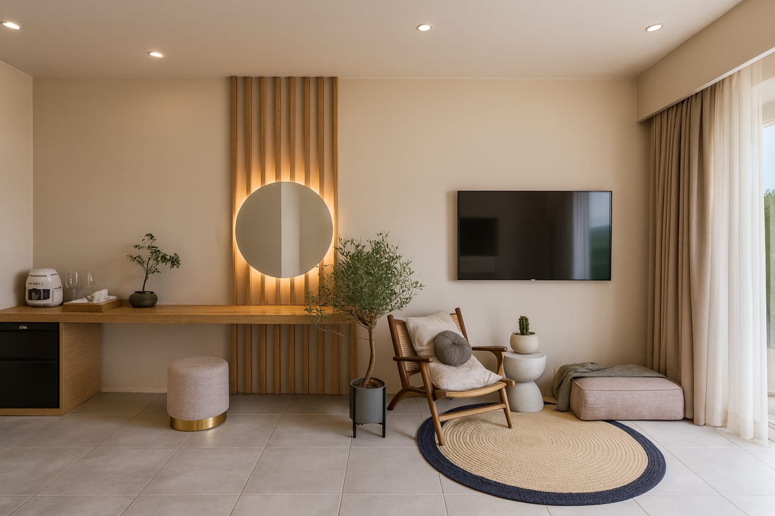 The Chillout Double room, draws inspiration from the raw beauty of the Cretan landscape, masterfully blending modern aesthetics with traditional design.